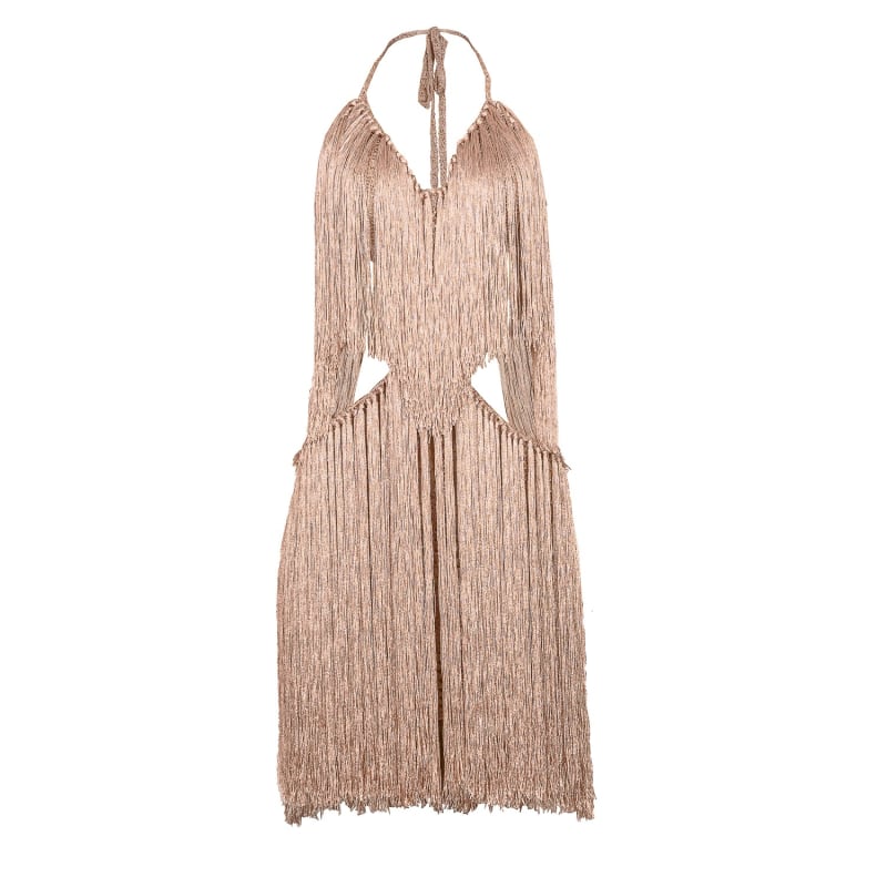 Cut Out Silk Fringes Crochet Dress Rose Gold Tricult Wolf Badger